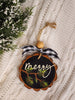 Christmas Merry Wood Slice Ornament: natural hand painted pine branches Holiday Decor, Personalized custom Christmas tree decorations