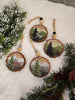 Hand-Painted Mountain Wood Slice Ornament • Rustic gray mountains • Snowy Pine - Nature Christmas Decor • Handmade Holiday Gift