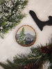 Bring cozy winter charm to your holiday décor with this handmade 4" wood slice ornament. Each piece is hand-cut and individually painted with layered gray mountains, a snowy sky, and a classic pine tree scene with the word "peace".  This ornament artwork is perfect for nature lovers, cabin décor, or gif