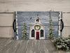 Bring cozy Christmas charm to your home with this handmade pallet wood serving tray (19" x 11"). Hand painted with acrylics, it features a snow-covered country church with a red door, flanked by two snowy pines and white birch trees. A festive evergreen wreath with a red bow adorns the church, while a bright red cardinal rests on a branch—a timeless symbol of hope and holiday spirit. Perfect as a seasonal serving tray or Christmas décor accent.